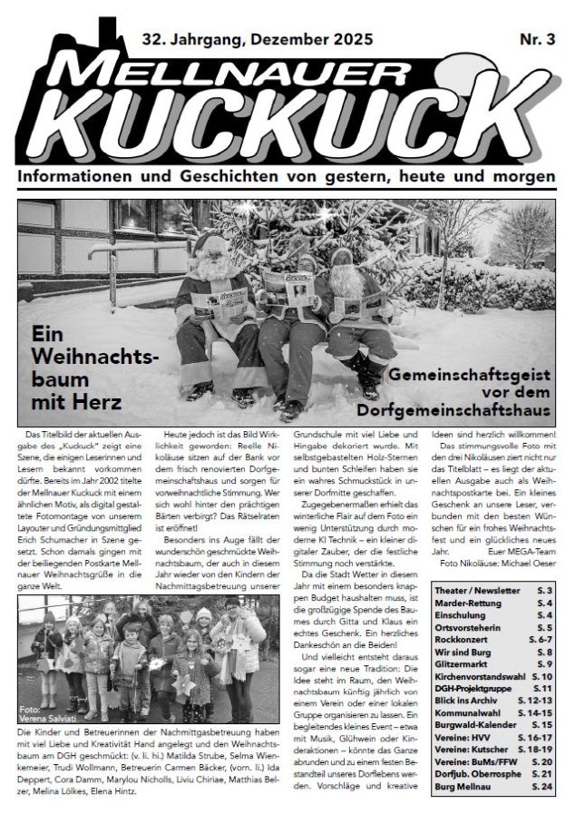 Die Winterausgabe des „Mellnauer Kuckuck“ berichtet wieder über Vergangenes und Zukünftiges im Dorf.